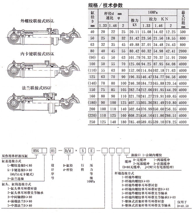 本系列液壓缸具有結(jié)構(gòu)簡單,工作可靠、裝拆方便、易于維修,可帶緩沖裝置及安裝型式多樣等特點。適用于工程機(jī)械、起重、運輸機(jī)械及礦山機(jī)械的液壓傳動。工作壓力16MPa,缸徑40-250mm。